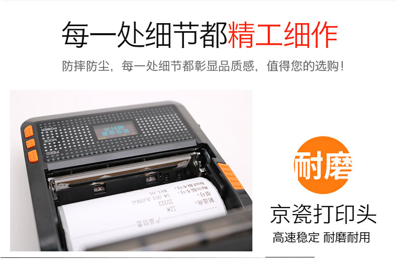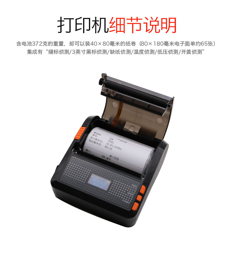 PT80(PT322)便携式蓝牙热敏打印机PT321升级款;增大了纸仓容量,提高了稳定性,同时支持热敏不干胶打印和小票纸的80mm宽便携式打打印。可对接手机,PDA手持终端实现二次开发!- 全视角