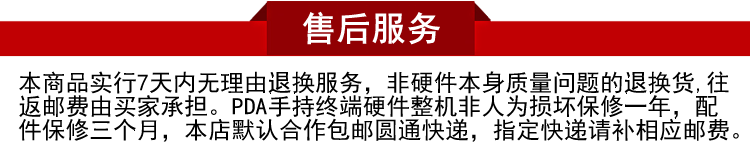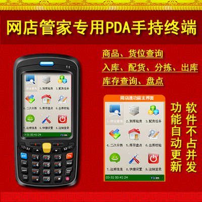 完美对接于es86 《网店管家》3.1版,PDA手持终端为IP54三防标准,经久耐用,功能完善包括收货、拣货、盘点、查询、出货等实用功能,不占用并发数。 PDA免费维护 自动升级功能更新及补丁更新。让您效率更高,出错率更低,价格实惠,功能强大可媲美电脑,赶紧行动吧!官方购买 正品设备 品质保证!