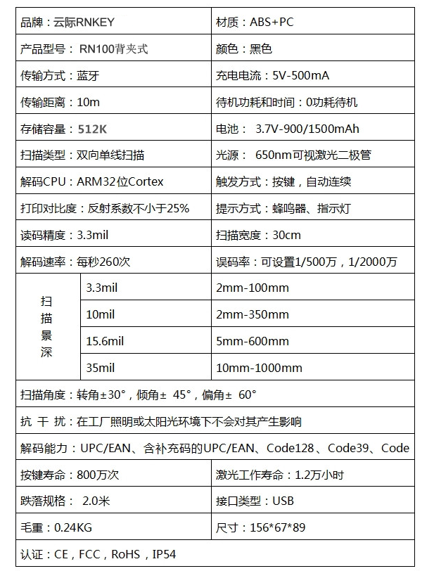 云际通用手机背夹式蓝牙扫描枪一代RN100